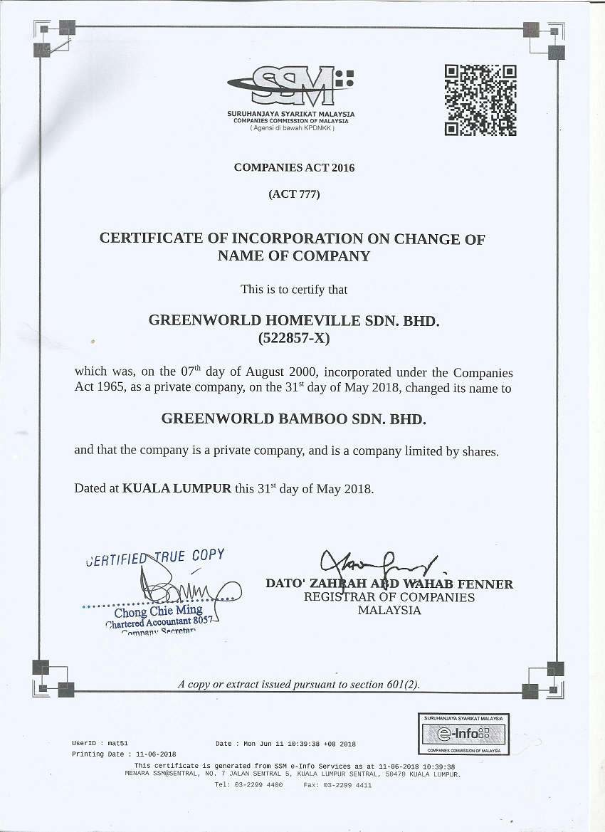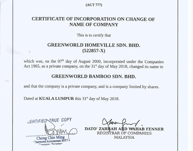 Greenworld Bamboo Sdn Bhd is a Green Economy—green ecologicaland clean energy-fuel company with an emphasis on growing and developing bamboo as material with the whole chain of bamboo products industry chains. Our company can provide consultancy and execution services in bamboo plantation establishments ,managements and productions . We can provide bamboo propagation services via seeds, cuttings and tissue cultures. We can also advise on bamboo downstream industries developments. Our company is registered in the year 2000 and the significant development was in the year 2020, we got the first contract with the government of Malaysia thus becoming the most leading and advanced bamboo industry company in Malaysia with Industry benchmark recommended by the Malaysian government. We had a long time cooperation in the bamboo business with our China based partners, we also have collaborative research arrangements with Malaysia local universities like Universiti Putra Malaysia (UPM) and Universiti Teknologi PETRONAS (UTP) for bamboo based material industries.